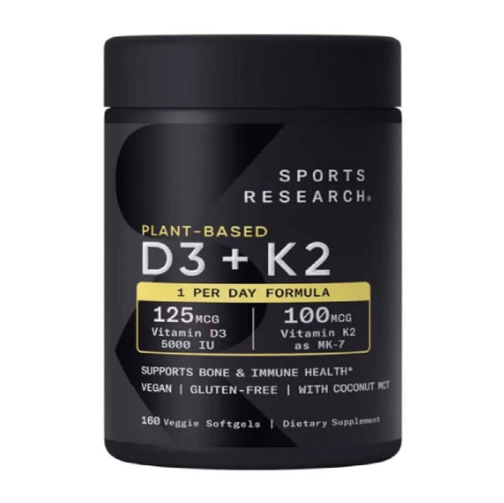 ویتامین د3 و کا2 اسپورتس ریسرچ 160 عددی Sports Research Vitamin D3 + K2